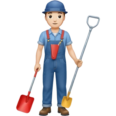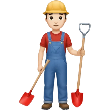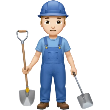 male worker 1950 flat hat and overalls and shovel standing emoji