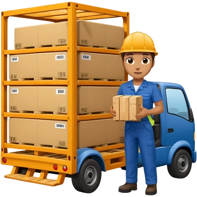 Worker with pallet in truck, import. emoji | AI Emoji Generator