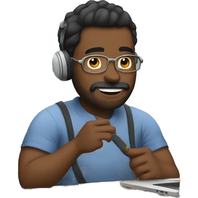 Working at my desk remotely from home balding Hispanic male with black hair and lighter skin emoji