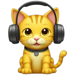 A girl is working in front of a computer, and a cat is lying next to the computer emoji