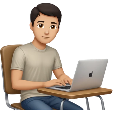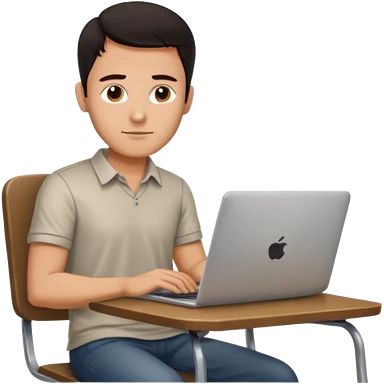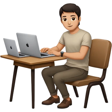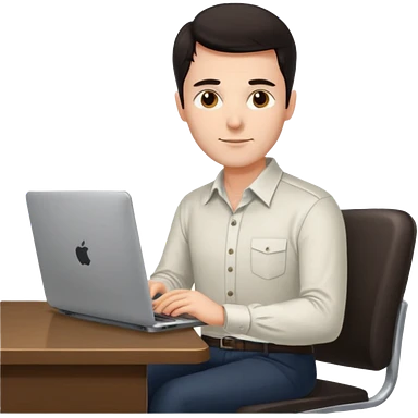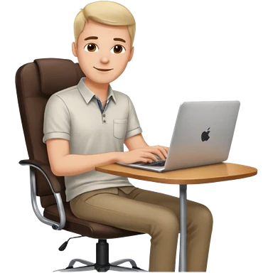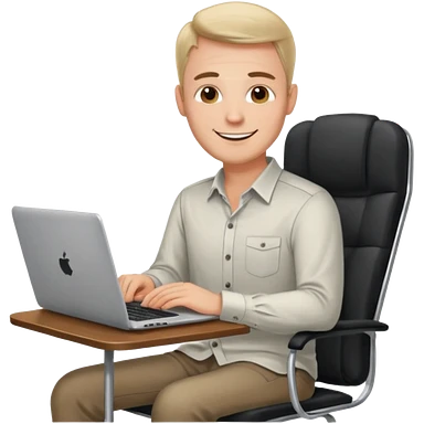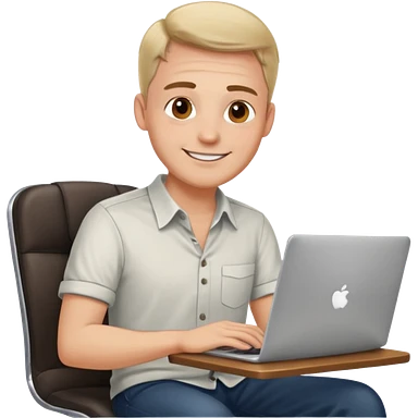 Rich man working setting on a chair in shirt, dark hair, and near the table with laptop he is german very beautiful looks like emoji