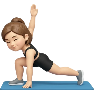 workout girl with brown hair, stretching, fitness clothes, emoji style emoji