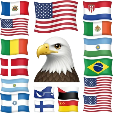 every flag of the flag's continent of the countries including the usa and eagle emoji