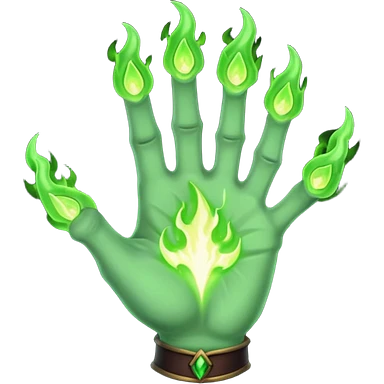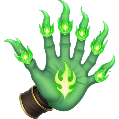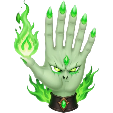 world of warcraft warlock hand with green fire checking nails like a pedicure was just done. just the hand emoji