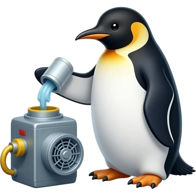 Penguin filling up generator in industrial world emoji