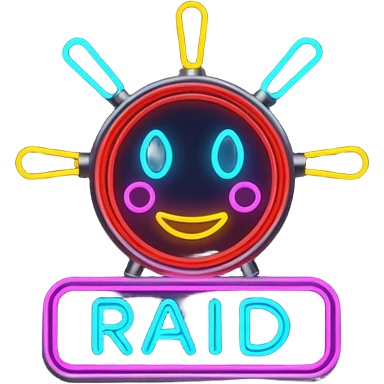 smiling pit holding a sign that reads the word "raid" in big red font emoji