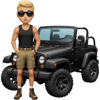 Объедини изображения машины внедорожника по типу wrangler и спортсмена человек должен привщаться в машину emoji
