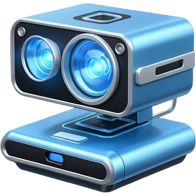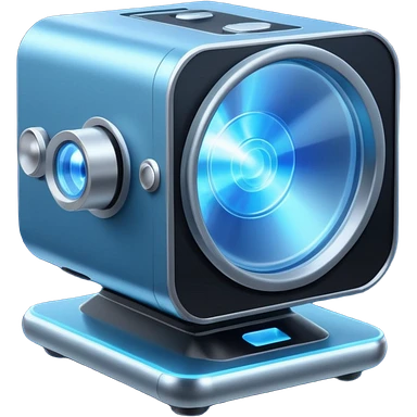Flat emoji of a wrist-mounted hologram projector emitting a soft blue light cone, simple shapes, modern sci-fi style emoji