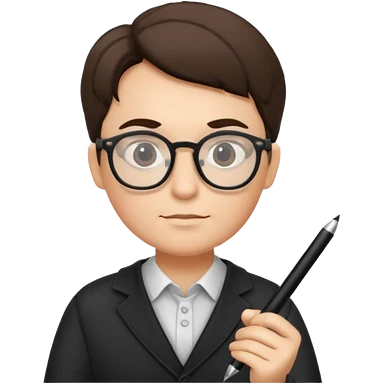writer holding pen in hand and closed book in other hand, with black curly hair and wearing glasses emoji