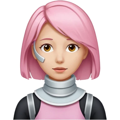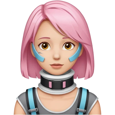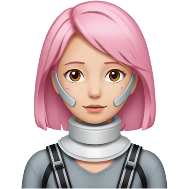 create an emoji of a woman with brown hair and a fringe with her right arm in a brace/sling emoji