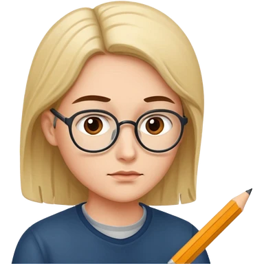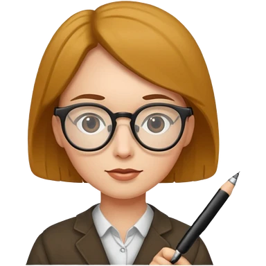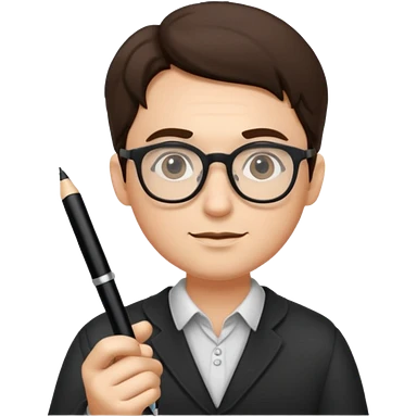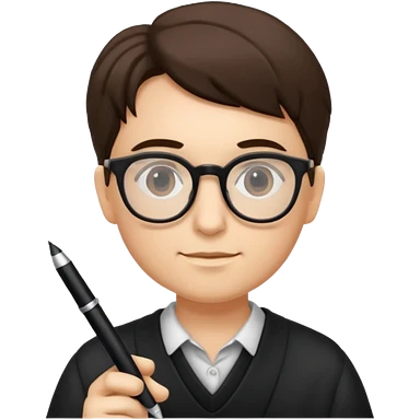 writer holding big pen and book, wearing glasses , zoom out emoji