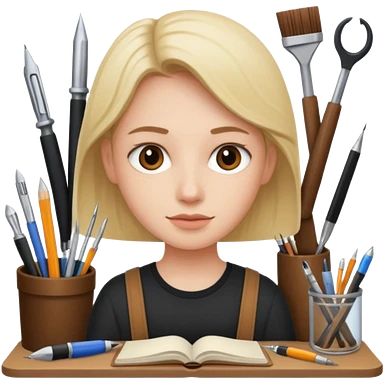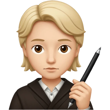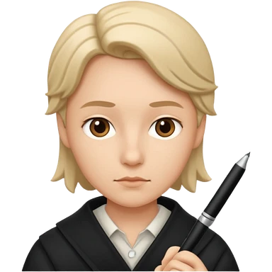 writer holding pen in hand and closed book in other hand, with blonde hair and wearing glasses emoji