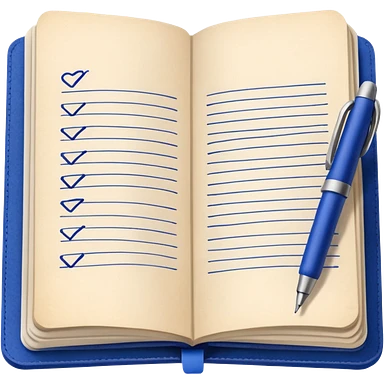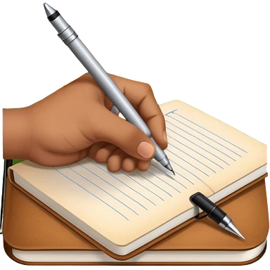 A journal with hand writing “five minutes journal” text on its cover emoji