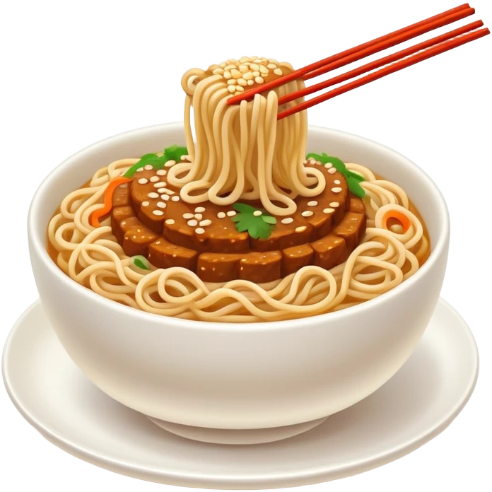 Wuhan Hot Dry Noodles with sesame paste topping, simplified emoji style with bold outlines and bright colors, cartoon style Hubei specialty breakfast emoji | AI Emoji Generator