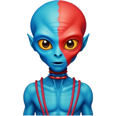 alien living in desert, dressed like a desert alien, red/blue colorful, accessories, just face emoji