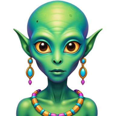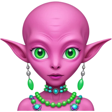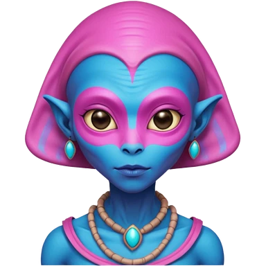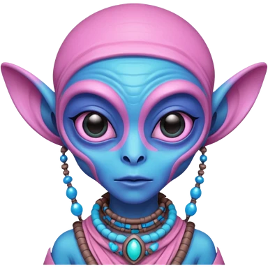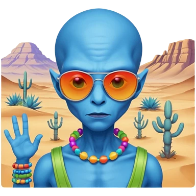 alien living in desert, dressed like a desert alien, pink/blue colorful, accessories, just face emoji