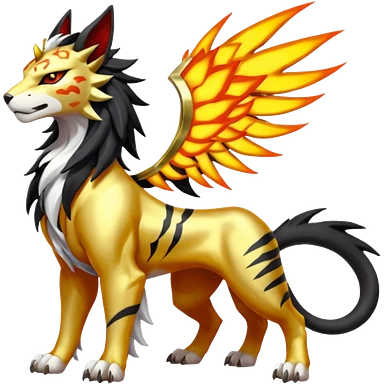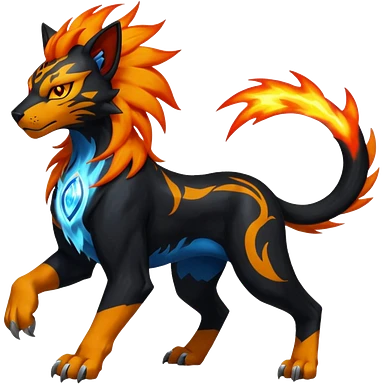 Shiny Glowing Legendary Epic Solgaleo-Pyroar-Torracat-Luxray-Tigress-Houndoom-Liger-Hybrid-Fakemon-hybrid-Creature (full body) emoji