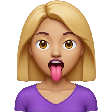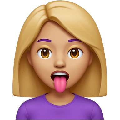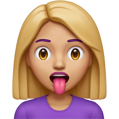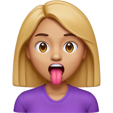 A 3D emoji-style woman with a dead-face vibe: X-shaped crossed-out eyes, mouth open with tongue sticking out slightly, lifeless cartoon expression. She has light caramel brown skin, smooth glossy emoji texture, rounded face, shoulder-length hair, wearing a purple top. emoji