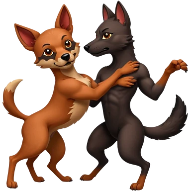 Anthro Muscular Xoloitzcuintle Dog playing with anthro muscular red wolf emoji