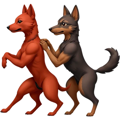 Muscular Xoloitzcuintle Dog playing with muscular red wolf emoji