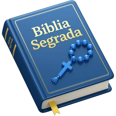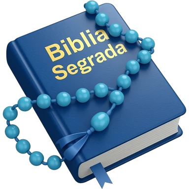 bíblia sagrada azul com rosário azul e título escrito Bíblia Sagrada emoji