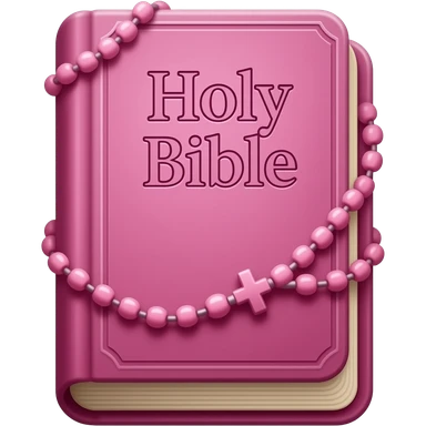 bíblia sagrada rosa com rosário rosa e título escrito Holy Bible emoji