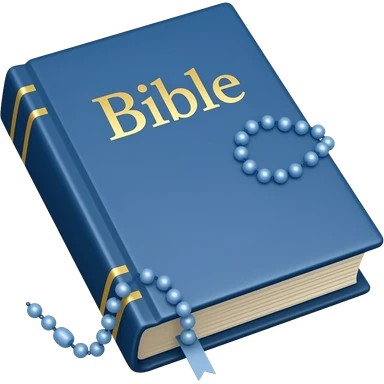 bíblia sagrada azul com rosário azul e título escrito Bíblia emoji