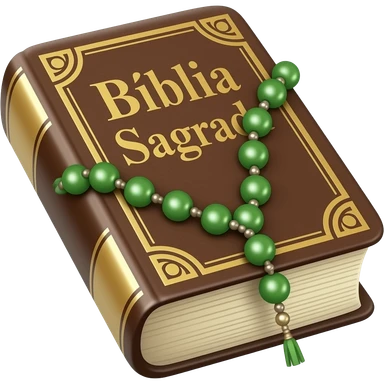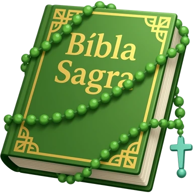 Bíblia Sagrada com rosário ambos na cor verde com o título Bíblia Sagrada emoji