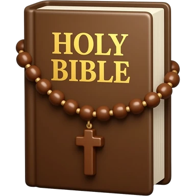 biblia sagrada marrom com rosário marrom com título Holy Bible emoji
