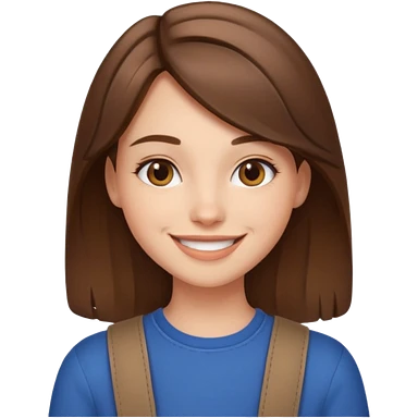 female face smiling with closed eyes with long brown hair and brown eyes in a blue t-shirt emoji