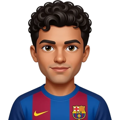 Lamine Yamal in Barcelona football kit, celebrating emoji