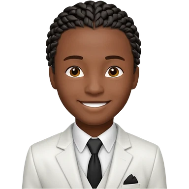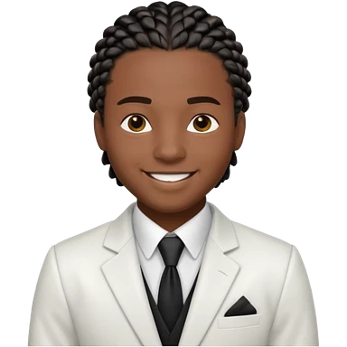 a young black guy with black cornrow braids wearing a full white suit emoji