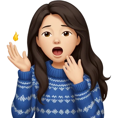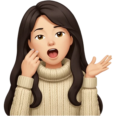 yawning dark long hair woman in sweater emoji
