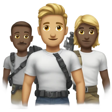 brown soldier with a spray can doing graffiti spelling out YBS emoji