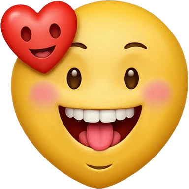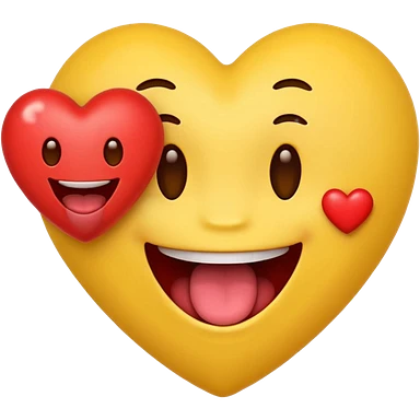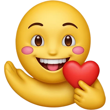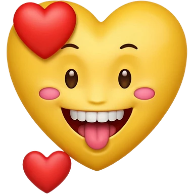 yellow emoji face holding a heart and hes so happy with so happy with teeth and tongue emoji