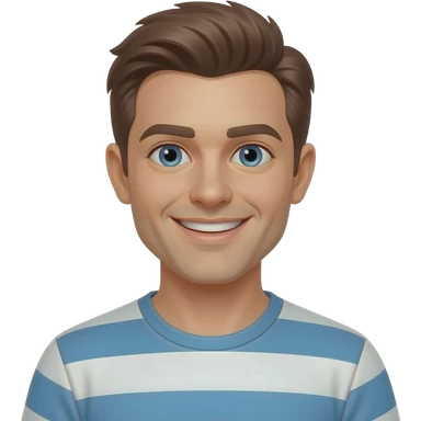30 year old man smiling with blue eyes and brown hair in t-shirt emoji