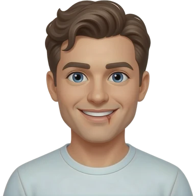 20 year old man smiling with blue eyes and brown hair in t-shirt emoji