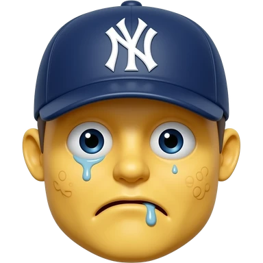 Yellow 3d emoji, New York Yankees hat, drooling, warts, drooping eyes emoji