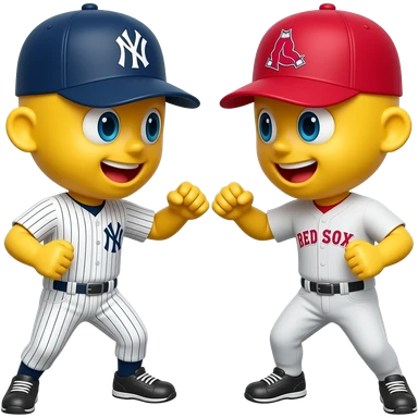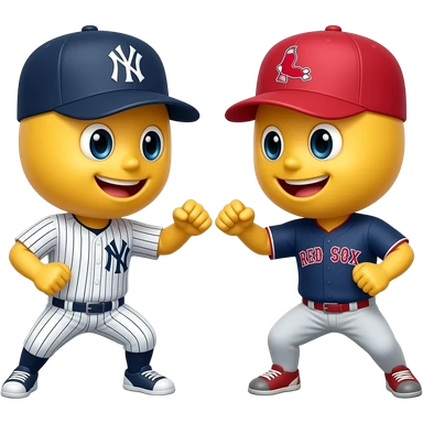 Yellow 3D emoji, Yankees hat, fighting with yellow 3d emoji red Sox hat emoji