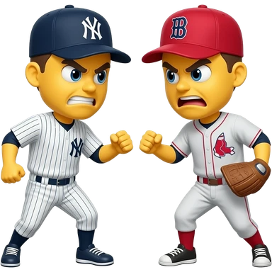 Angry Yellow 3D emoji, Yankees hat, fighting with yellow 3d emoji red Sox hat emoji