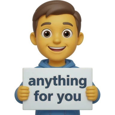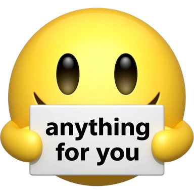Yellow smiley face holding up a sign that says "anything for you" emoji