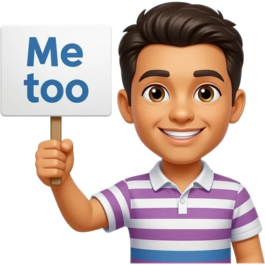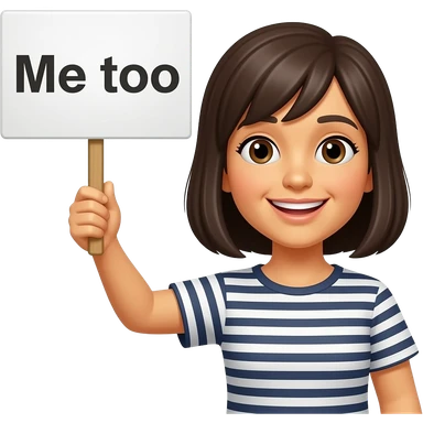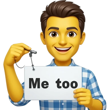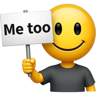 Yellow smiley face holding up a sign that says "Me too" emoji