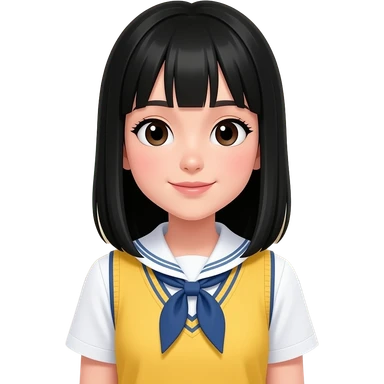Yellow , black straight hair tall girl in uniform no bangs in school emoji