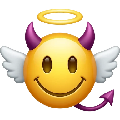Yellow classic smiley Angel emoji crossover purple classic smiley devil emoji emoji