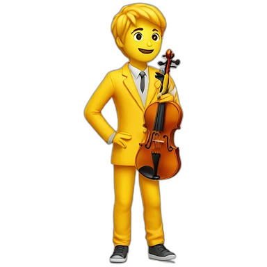 yellow-boy-with-white-jacket-and-orange-trausers-standing-in-a-yellow-sea-while-playing-violin-with-paintbrush emoji | AI Emoji Generator