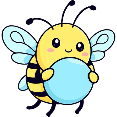 Isolated cute buzzing bumble bee , detailed pale blue, to pale yellow colorshifting wings emoji