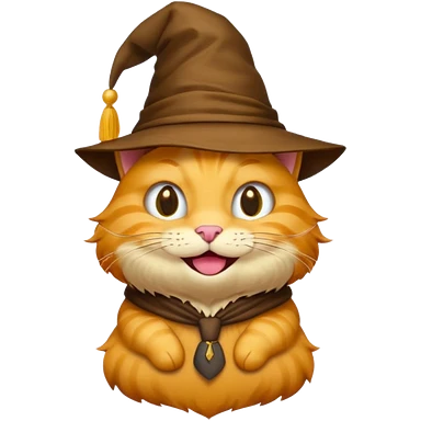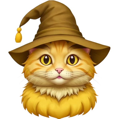 Yellow cat emoji wearing a sorting hat emoji