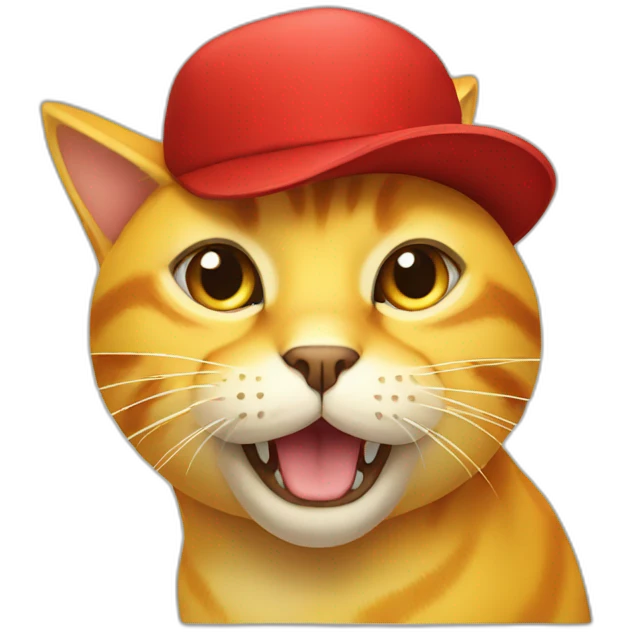 red cat with a white breast, a red spot on the chin. yellow eyes. fluffy. emoji