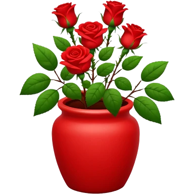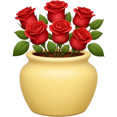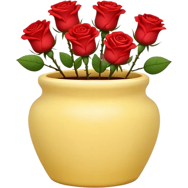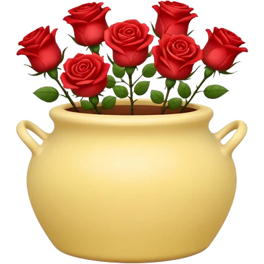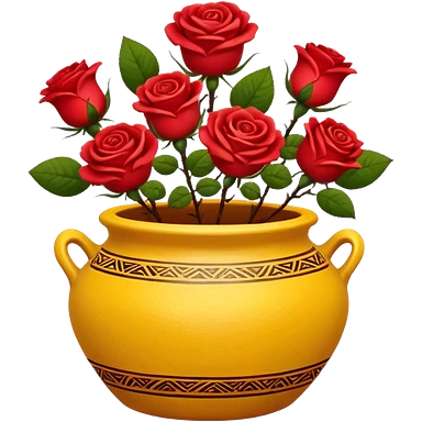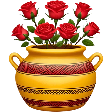 Yellow ceramic pot with red roses; the pot is decorated in an ethnic style. emoji | AI Emoji Generator