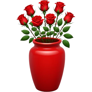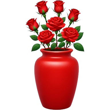 Scarlet red ceramic pot, tall and cylindrical, with red roses. emoji